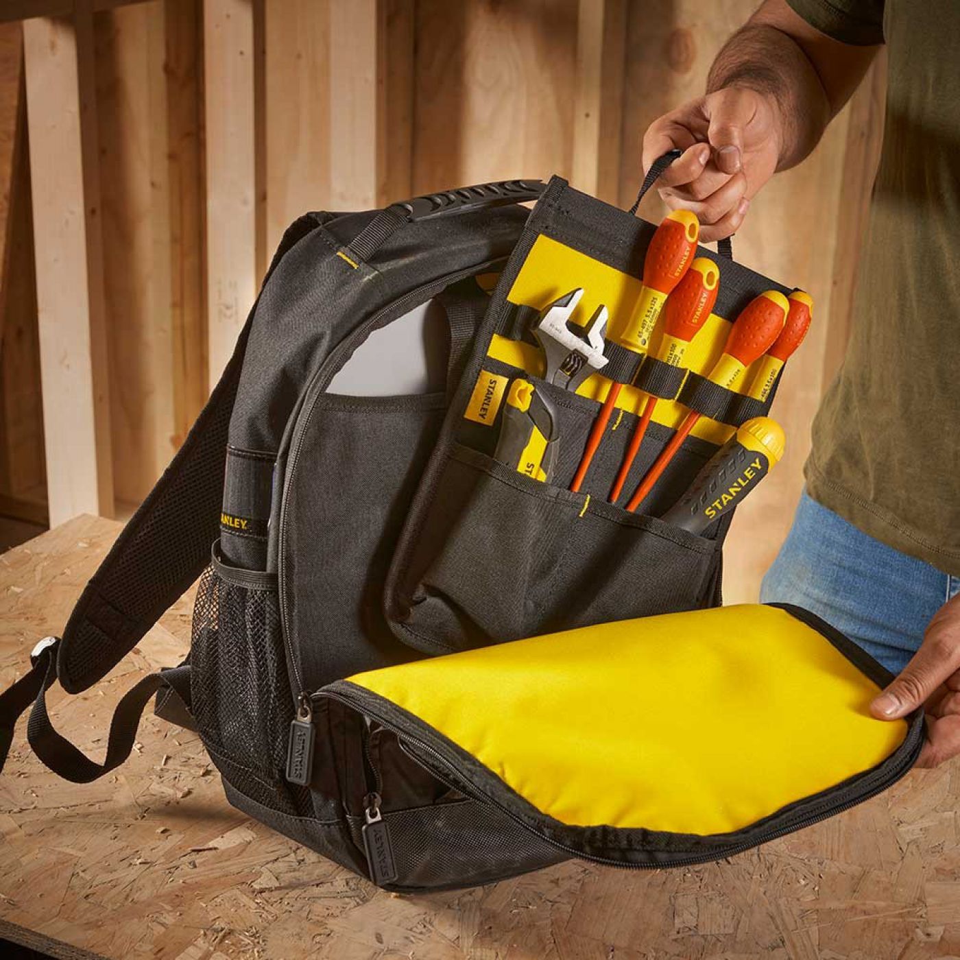 Stanley® ΣΑΚΙΔΙΟ ΜΕΤΑΦΟΡΑΣ ΕΡΓΑΛΕΙΩΝ. 35 x 16 x 44 cm -Σακίδιο πλάτης για εύκολη μεταφορά εργαλείων -Υφασμα 600 x 600 DENIER -Αποσπώμενα διαχωριστικά με τσέπες για εργαλεία συχνής χρήσης -Πλάτη με μαλακή επένδυση για εύκολη και άνετη μεταφορά -Διάφοροι χώροι αποθήκευσης και χώρος για μεταφορά Laptop -Χωρητικότητα σακιδίου 15kg