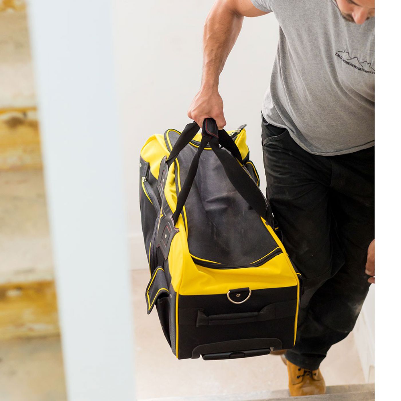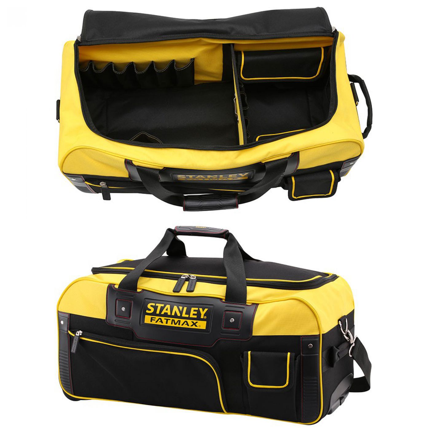 ΕΡΓΑΛΕΙΟΘΗΚΗ ΒΑΛΙΤΣΑ FATMAX® ΜΕ ΤΡΟΧΟΥΣ. 70 x 30,5 x 31,8 cm -Μέρος της επαγγελματικής σειράς εργαλειοθηκών FATMAX® με καινοτότομα σχεδίαση -Yψηλής ποιότητας φερμουάρ, ιμάντας ώμου Β.Τ. με κρίκους D, -Υφασμα denier 600x600 -Σκληρός αδιάβροχος ενισχυμένος πάτος -Πλήθος εξωτερικών & εσωτερικών θηκών -2 υφασμάτινες λαβές μεταφοράς -Τηλεσκοπική λαβή ελξης