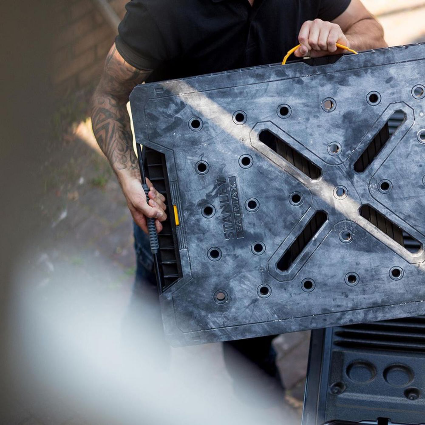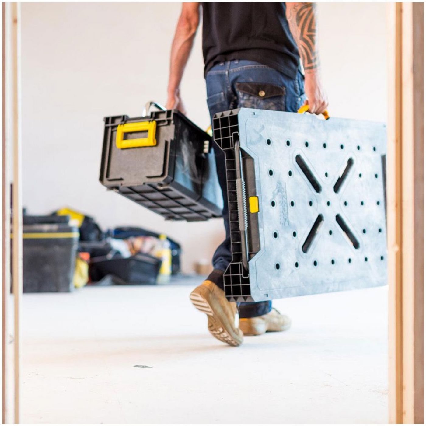 ΠΑΓΚΟΣ ΕΡΓΑΣΙΑΣ ΠΤΥΣΣΟΜΕΝΟΣ Β.Τ. FATMAX® -Μεταλλικά πόδια που αντέχουν φορτίο έως και 455kg -Μεγάλη επιφάνεια εργασίας (85x60 cm) επιτρέπει πληθώρα εργασιών -Συμβατός με σφιγκτήρες,κατάλληλος για οριζόντια και κάθετη τοποθέτηση τους -Λαβές για μεταφορά και αποθήκευση -Διπλώνει σε δευτερόλεπτα για εύκολη και γρήγορη μεταφορά & αποθήκευση