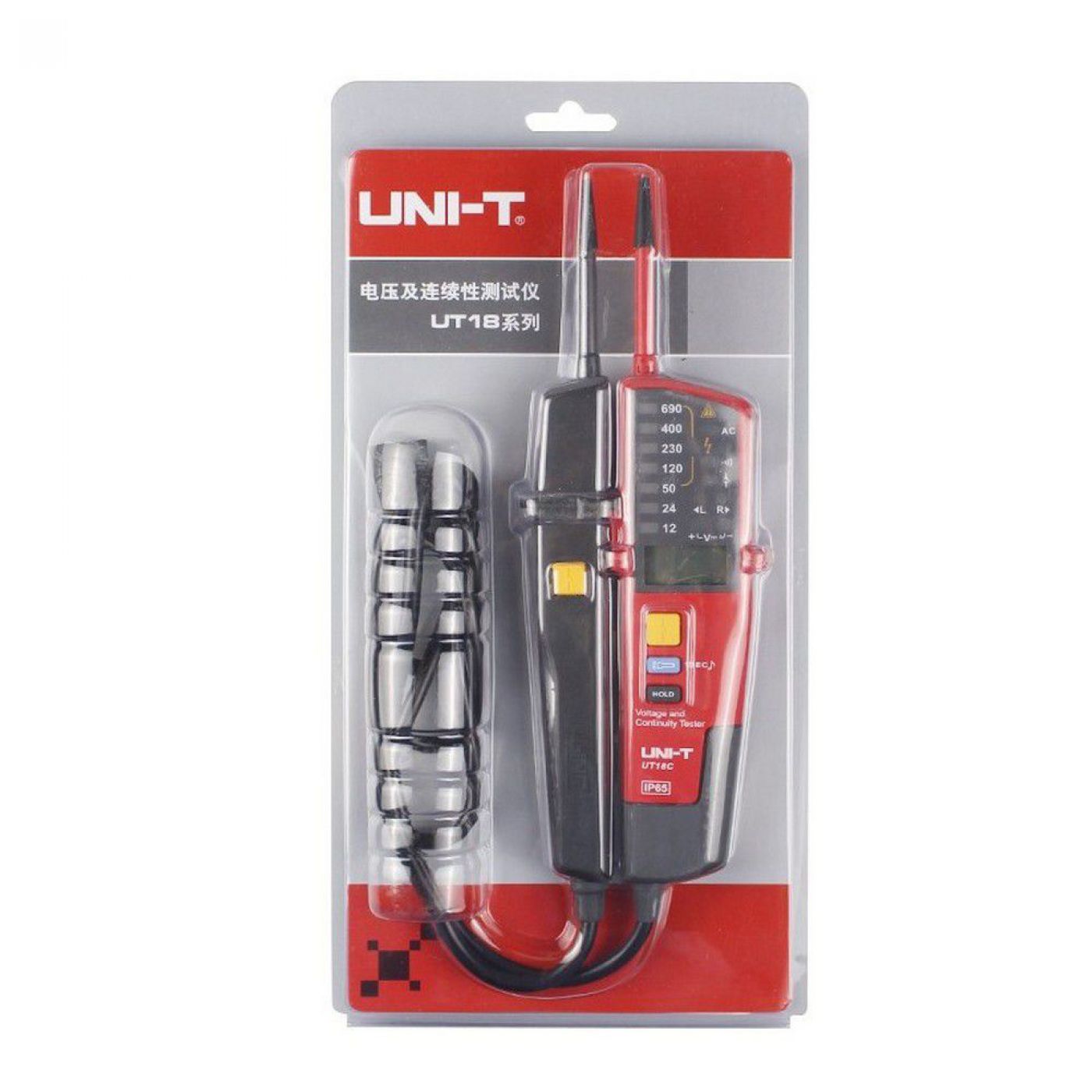 Χαρακτηριστικά Προϊόντος: -Δοκιμαστικό τάσης και συνέχειας κυκλώματος με 12 ενδείξεις τάσης με LED (12V-690V). -Ηχητική και οπτική ένδειξη συνέχειας κυκλώματος, ένδειξη φοράς φάσης σε τριφασικό δίκτυο. -Ψηφιακή οθόνη LCD. -Έλεγχος Ρελέ Διαφυγής, Διαδοχής φάσεων -Μέτρηση εναλλασσόμενης τάσης, αντίστασης μέχρι και 4000KΩ, συνέχειας -Διαθέτει φακό στην πρόσοψη -Ανίχνευση πολικότητας. -Βάρος: 280gr