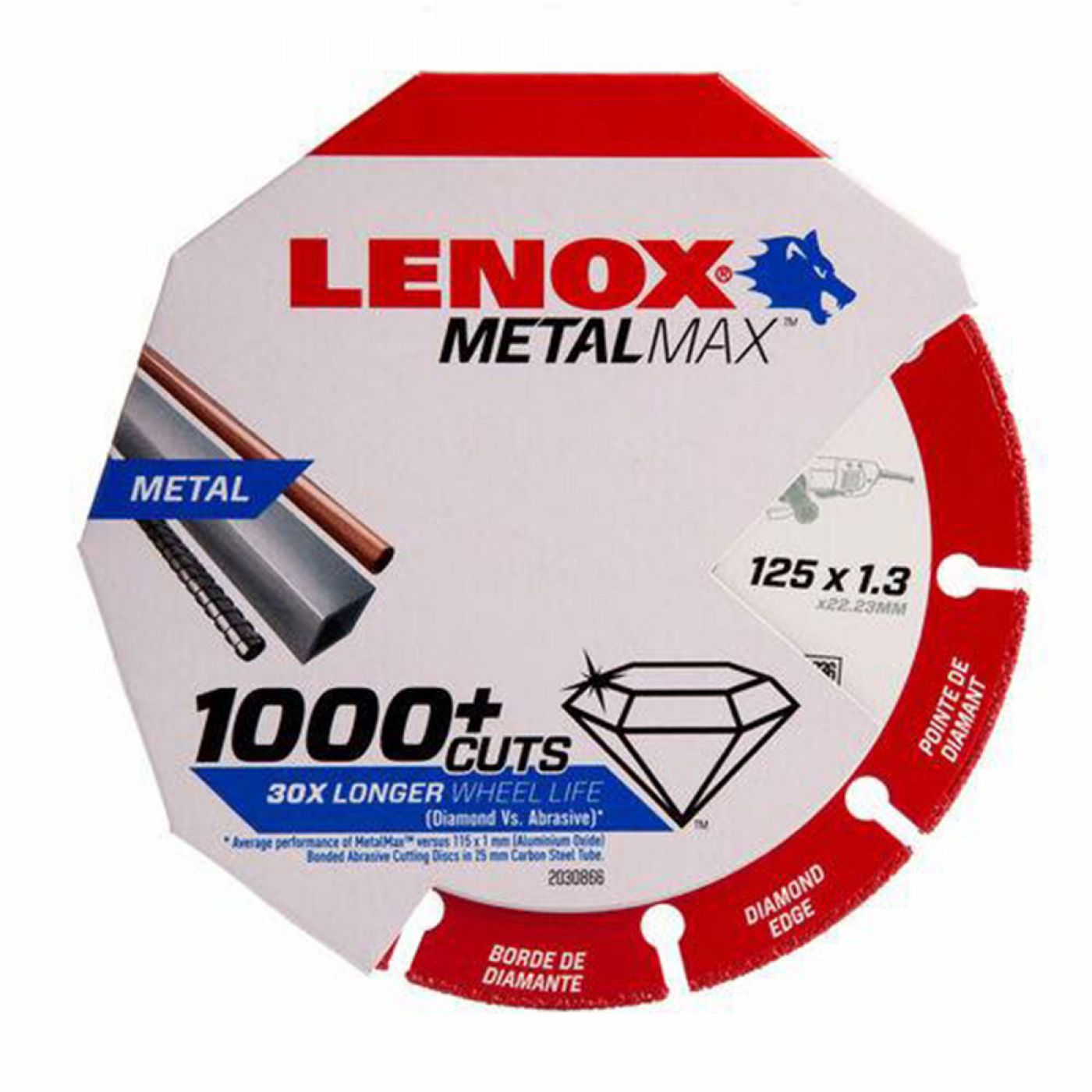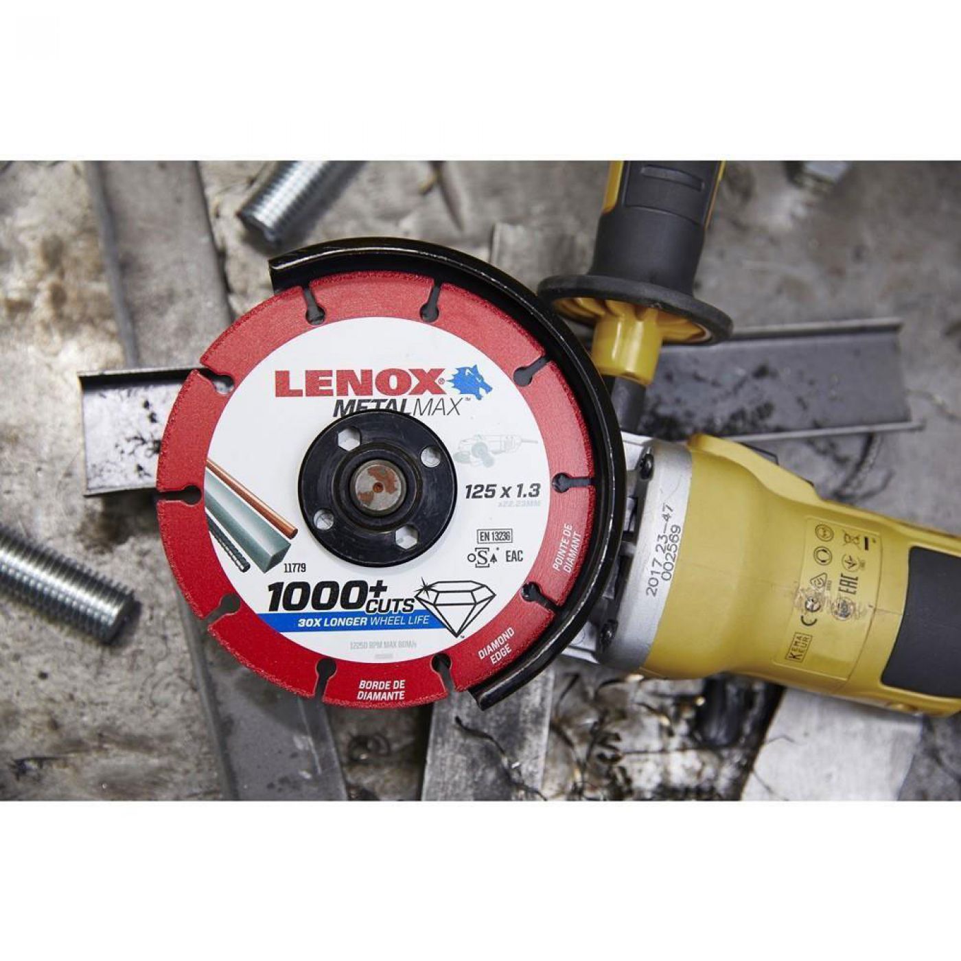 Η σειρά LENOX METALMAΧ™ αποτελεί τη νέα εναλλακτική λύση στους δίσκους κοπής. Η πρωτοποριακή τους τεχνολογία διαμαντιού προσδίδει εξαιρετική αντοχή ώστε να σας επιτρέψει να μεγιστοποιήσετε την αποτελεσματικότητα της εργασίας σας και να μειώσετε το κόστος των εργασιών κοπής μετάλλου. Οι δίσκοι κοπής LENOX METALMAX™ μπορούν να χρησιμοποιηθούν σε διάφορους τύπου μετάλλων, συμπεριλαμβανομένου του χάλυβα, των λαμαρίνων, του ανοξείδωτου χάλυβα, της ράβδου οπλισμού, του χυτοσιδήρου, του αλουμινίου